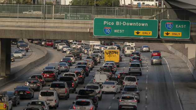 Morning traffic on Interstate 10 heading into downtown Los Angeles ...