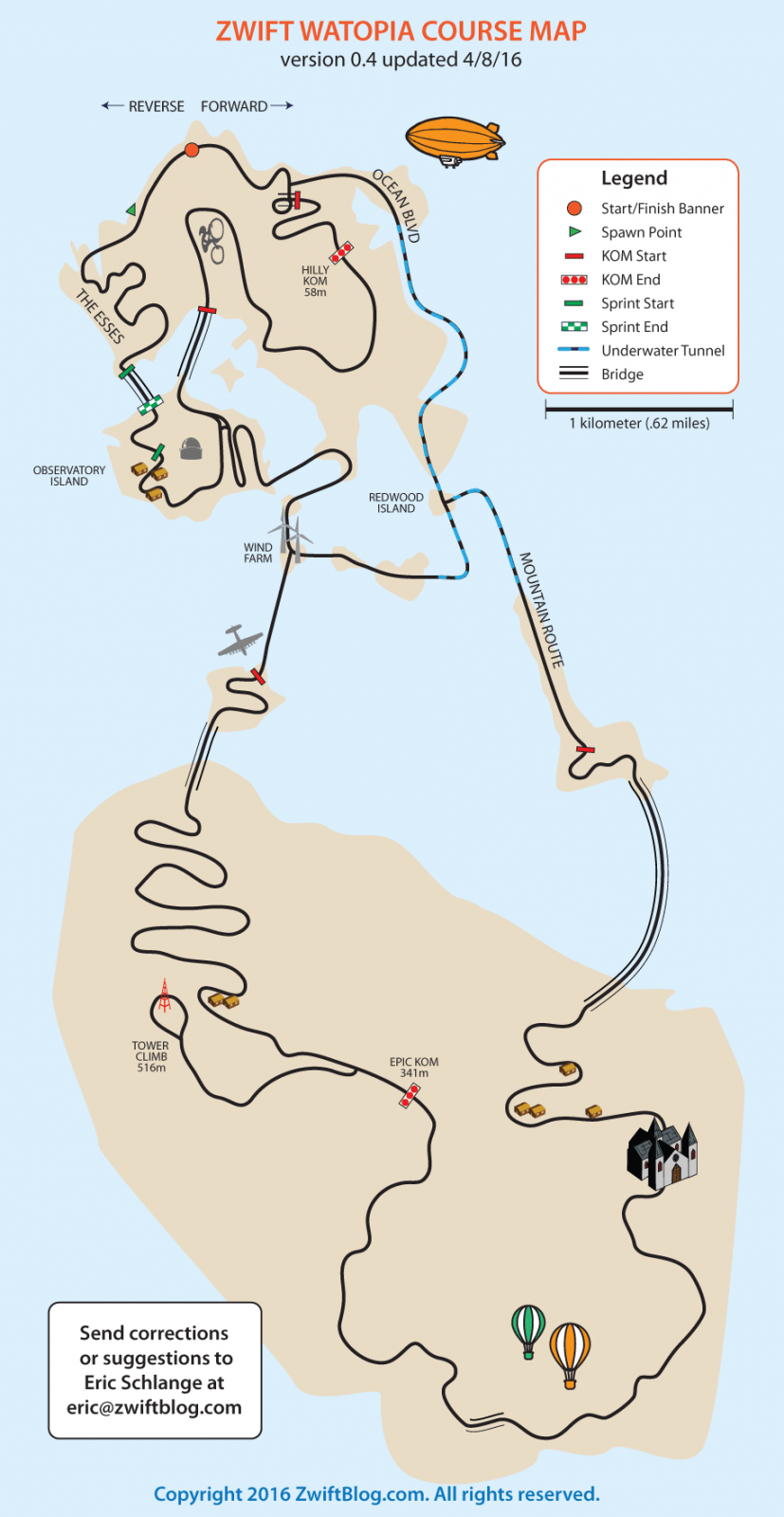A handy updated map of Watopia : Zwift